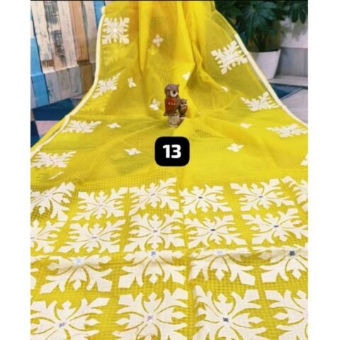 Yellow Handloom Applique Work Saree