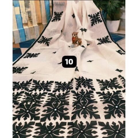 White Handloom Applique Work Saree