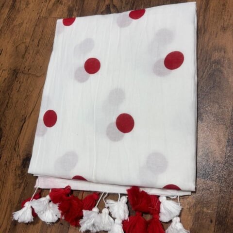 White Pure Mul Cotton Saree – Designer Ball Print Collection