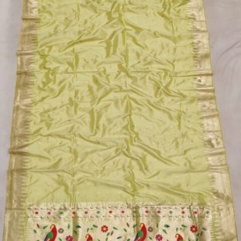 Light Gold Premium Paithani Soft Silk Dupatta – Allover Butta with Hand-Knotted Tassels