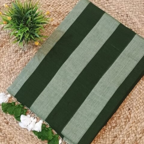 Forest Green and Light Mint Green Stripes Ramdhanu Cotton Saree