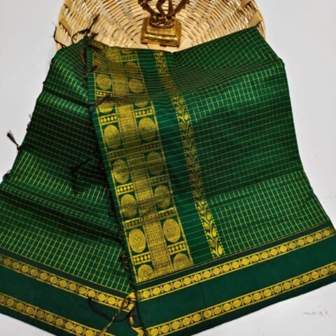 Green Premium Gadwal Pattern Cotton Checked Saree with Grand Jari Pallu