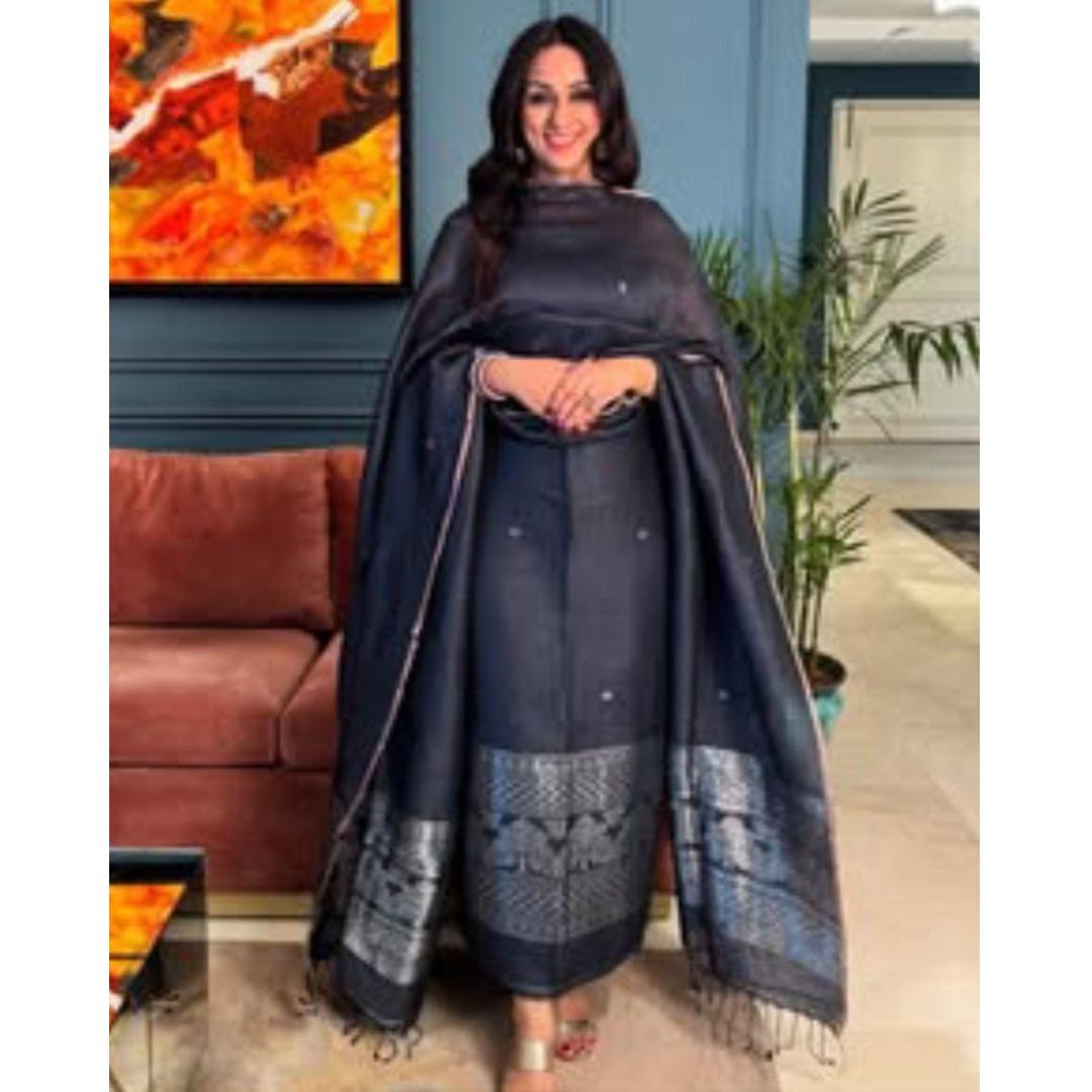 Baluchari dress materials with silver zari border gives it beautiful elegant look apt for office, hospital wear, school, semi functional wear, office ethnic days