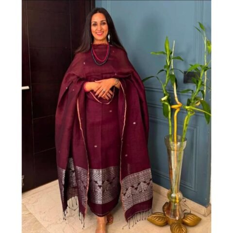 Baluchari dress materials top and dupatta fir for festival, office ethnic days, functions, kitty parties. The golder zari border adds beauty to entire ensemble