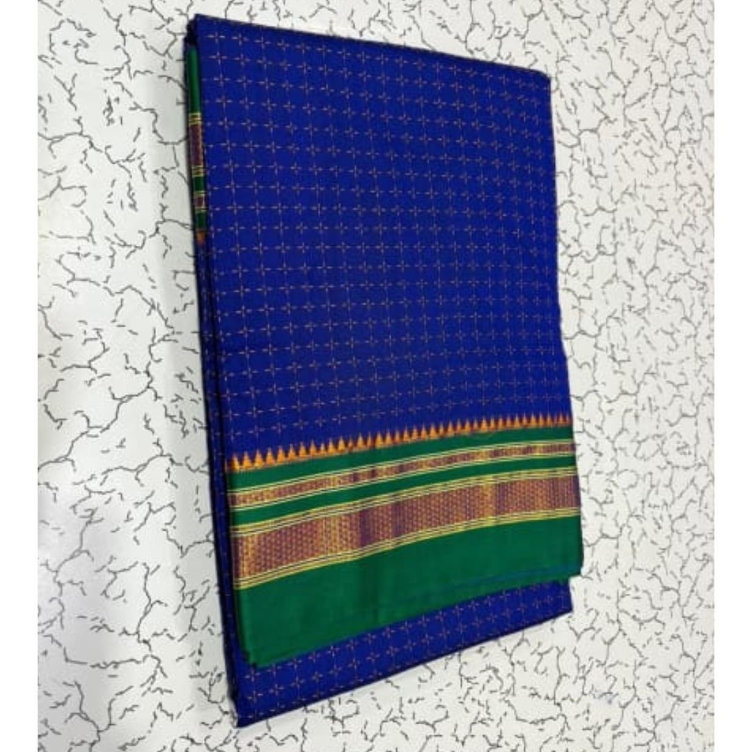The heart of ilkal patterned sarees, with thousands of thread boxes and dots. Very intricate and handmade. Use with most delicate handling. Washing by dry cleaning is advised. But when worn adds glam to the wearer. Best for All corporate workers, hospital or health care related professionals, school teachers