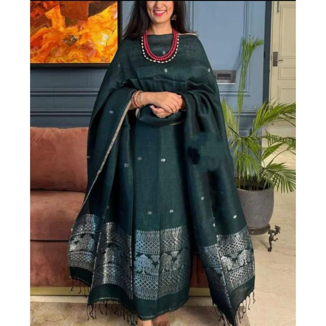 Dark Green Baluchari Dress Materials ( Top+Dupatta )