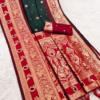 Deep Sacramento Green Premium Paithani Soft Silk Dupatta – Allover Butta with Hand-Knotted Tassels