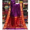 Purple Handloom Pure Mul Cotton Saree with Elegant Gini Work