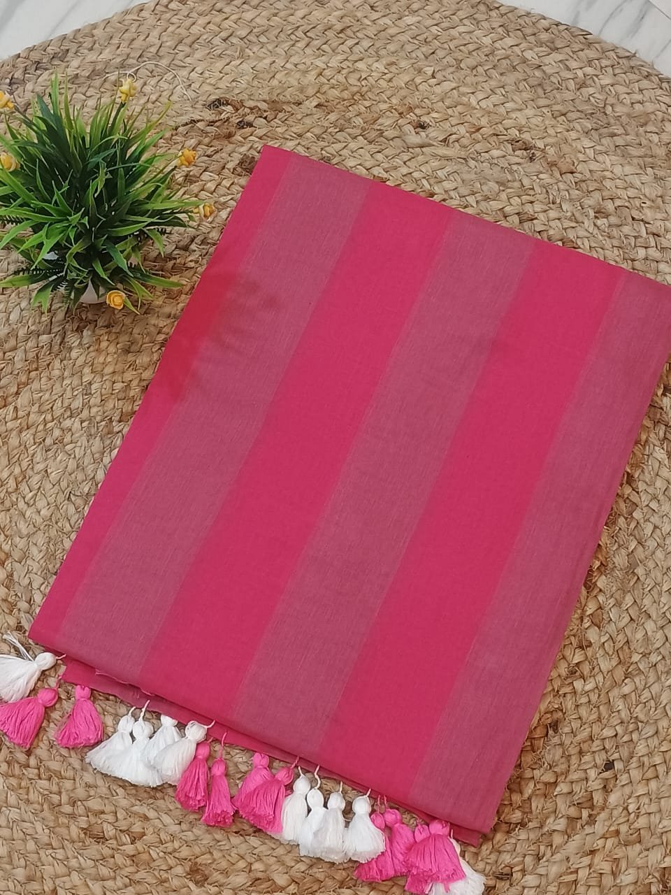 Hot Pink and Light Pink Stripes Ramdhanu Cotton Saree