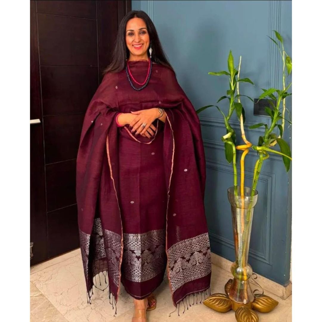 Marron Baluchari Dress Materials ( Top+Dupatta )