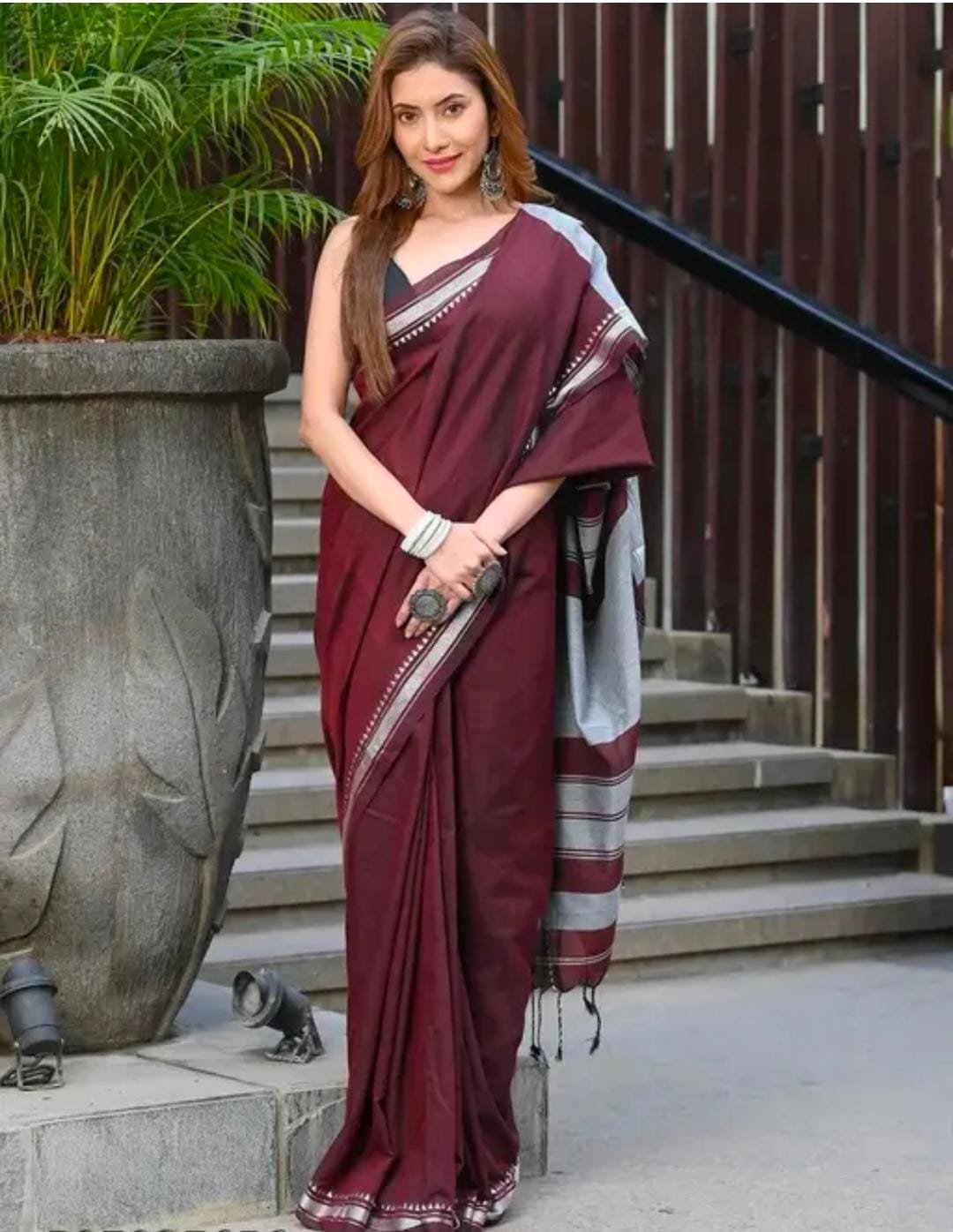 Maroon Exclusive Pure Cotton Saree with All-Over Weaving Border