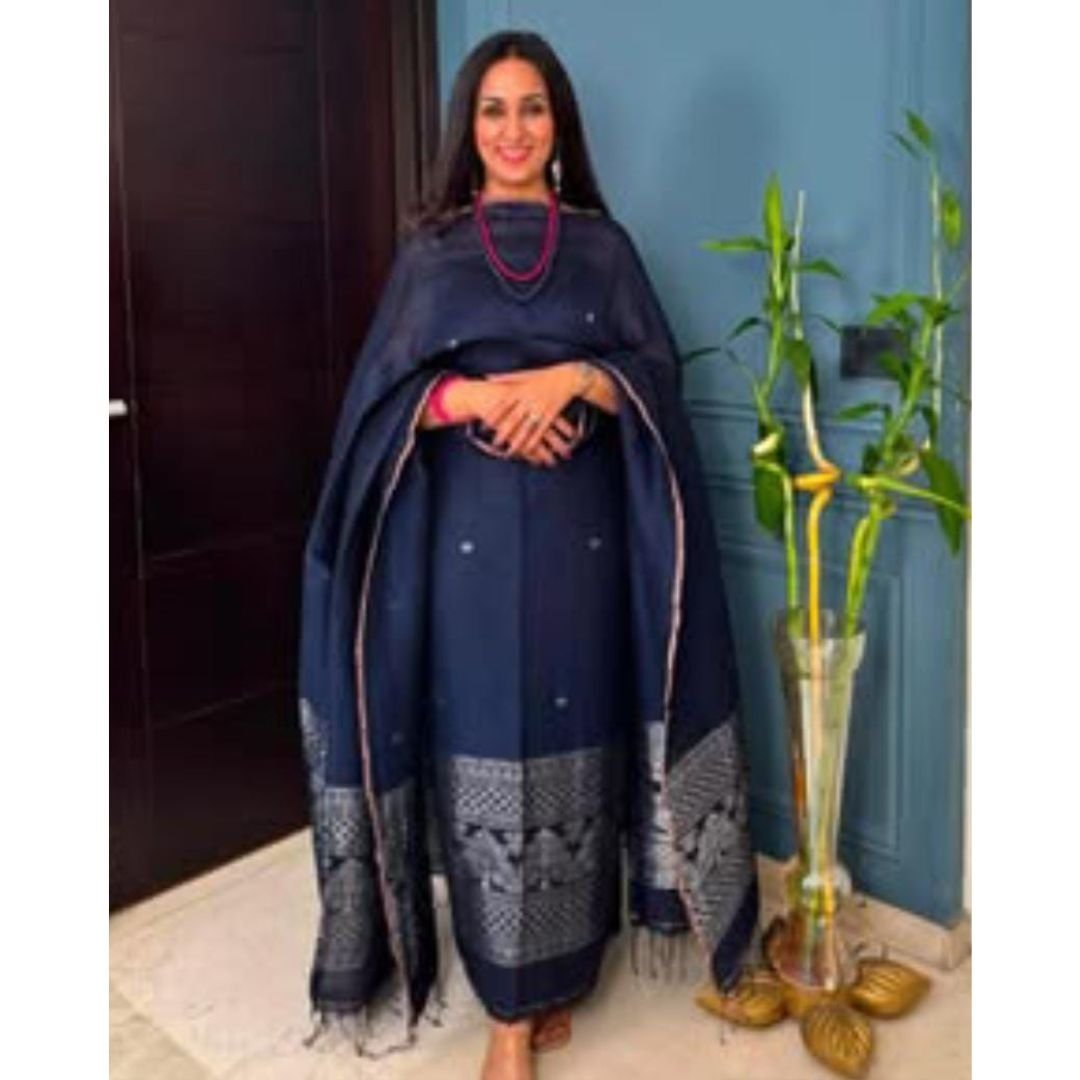 Baluchari dress materials with silver zari border gives it beautiful elegant look apt for office, hospital wear, school, semi functional wear, office ethnic days