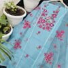 Kota doria dress materials top and dupatta with intricate embroided flowers giving it elegant look.