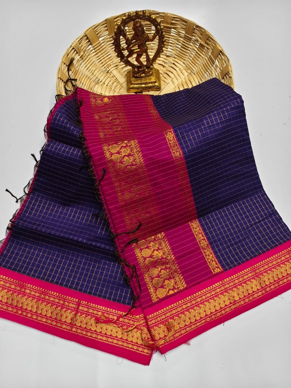 Be the first to review “Voilet Premium Gadwal Pattern Cotton Checked Saree with Grand Jari Pallu”